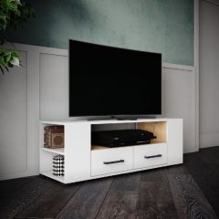 Тумба под ТВ ТВМ-1 Белый/ ЛДСП Дуб крафт золотой