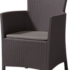 Iowa - это элегантное и комфортное садовое кресло, предлагаемое в комплекте с подушкой. Широкая гамма цветов и оригинальная, подобная ротанговой, фактура поверхности придется по вкусу даже самым требовательным пользователям. Изготовлено из стойкой к воздействию УФ-излучения и погодных условий высококачественной пластмассы. Очень просто собирается и легко чистится.